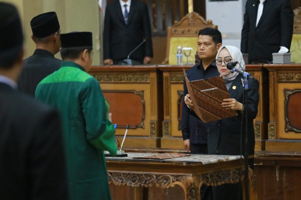 “Mempedomani ketentuan Pasal 114 Peraturan Pemerintah Nomor 12 Tahun 2018 yang menyebutkan bahwa Anggota DPRD Pengganti Antar Waktu sebelum memangku jabatan nya, mengucapkan sumpah/janji yang dipandu oleh Pimpinan DPRD dalam rapat paripurna.