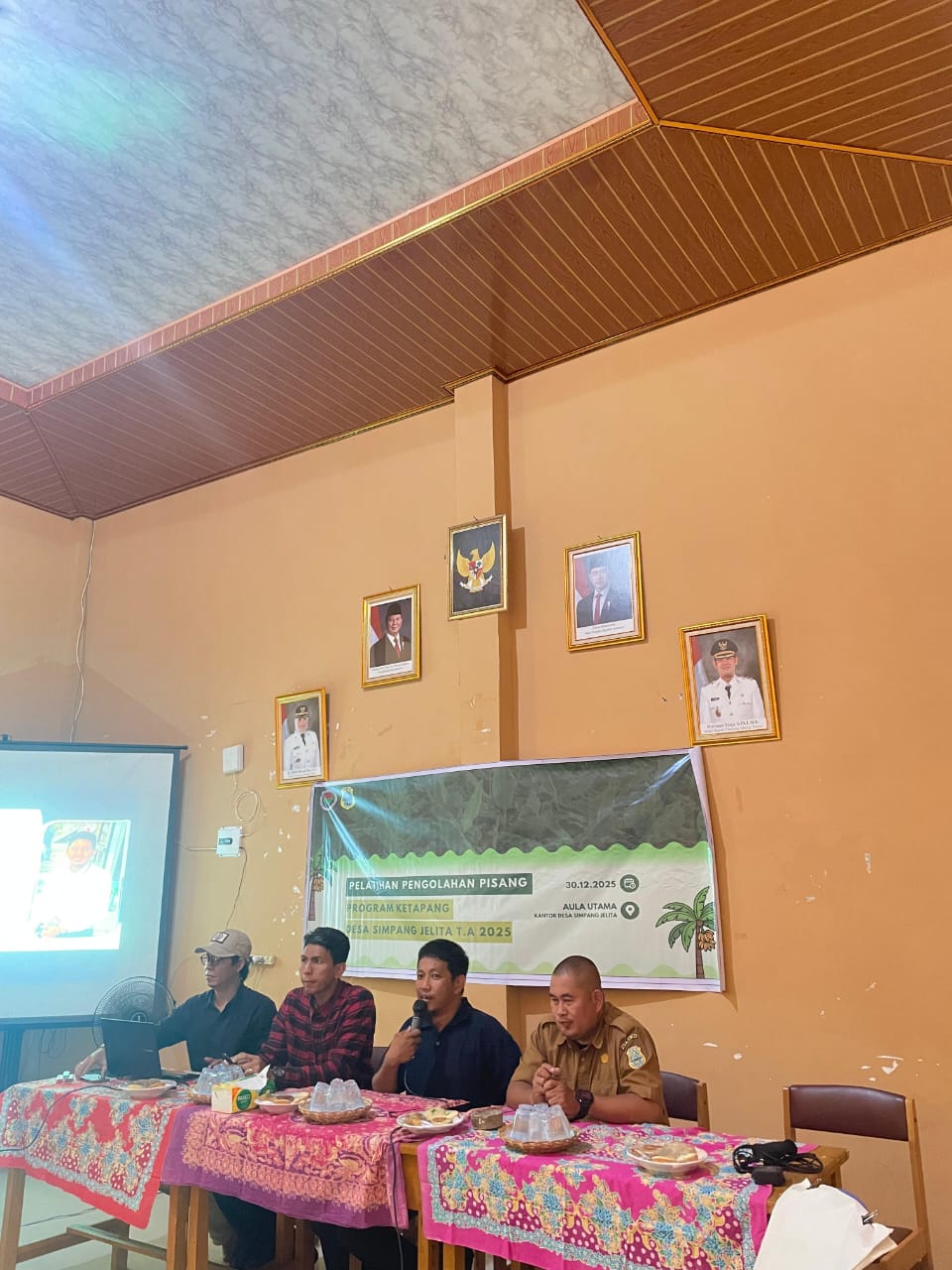 Dalam upaya nyata meningkatkan keterampilan dan kreativitas pelaku Usaha Mikro, Kecil, dan Menengah (UMKM), Pemerintah Desa Simpang Jelita hari ini. Selasa 30/12 menyelenggarakan Pelatihan Olahan Makanan Berbahan Baku Pisang. Kegiatan yang diikuti oleh puluhan peserta dan di hadiri Budi Kepala Desa Simpang Jelita, Padita Kabid Pemberdayaan PMD, Alberi Kasi PPM , dan Iip kasi Kantor Camat Nipah Panjang.